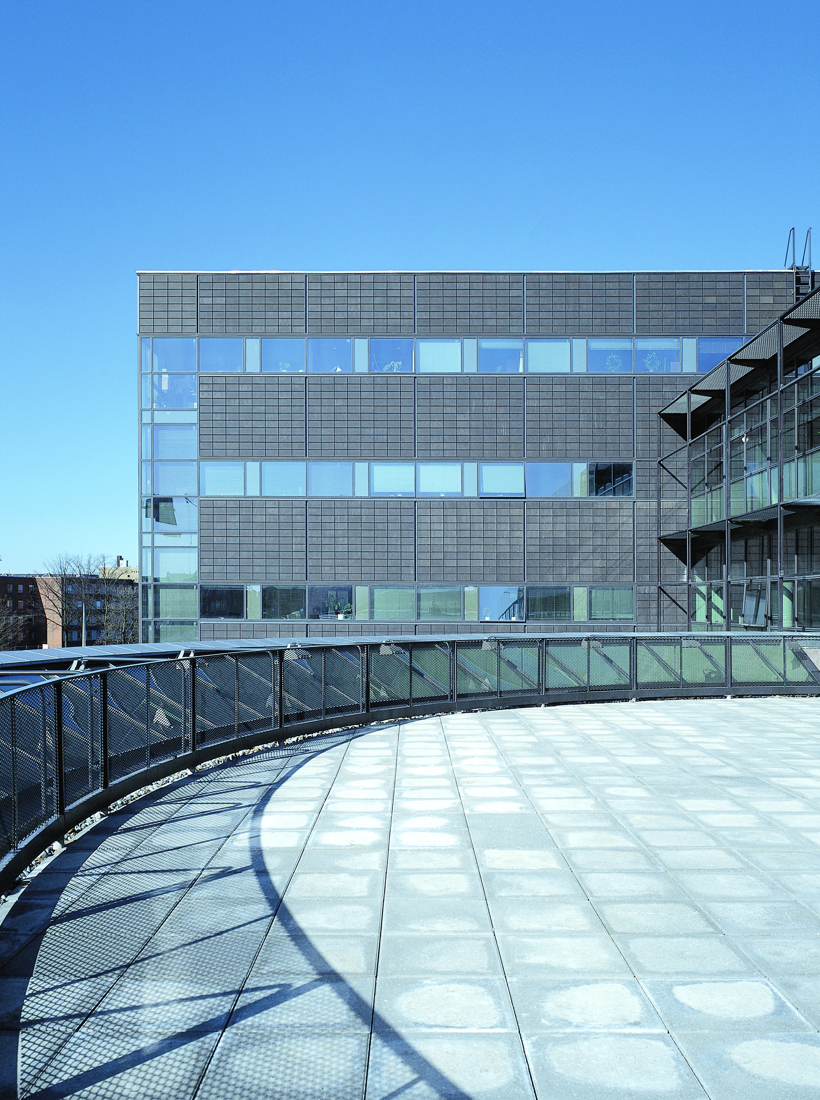CBS is designed with earth tones in good-quality, robust materials. Transversal wing buildings are clad with screen bricks; built up around a visible steel frame, thus creating a robust ridge frame. This scales down the exterior spaces in front of the building. Stig L. Andersen has designed the pocket parks alongside the southern facade with funding from a series of foundations.