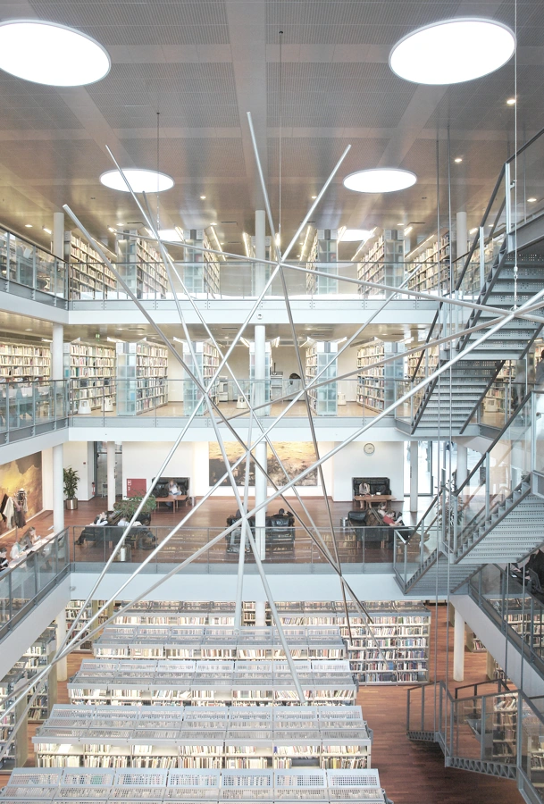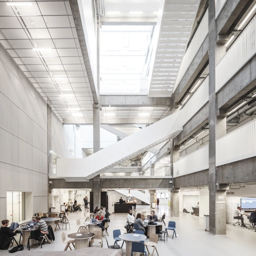 The building’s inner arcade forms a backbone with a series of auditoriums, a library, CBS’s joint administration, and common facilities. A big part of CBS on Solbjerg Square contains private programs, where the auditoriums are the most significant ones. In spite of that, the building presents itself as open and inviting – facing the busy pedestrian street at Frederiksberg Library and Frederiksberg Metro Station.