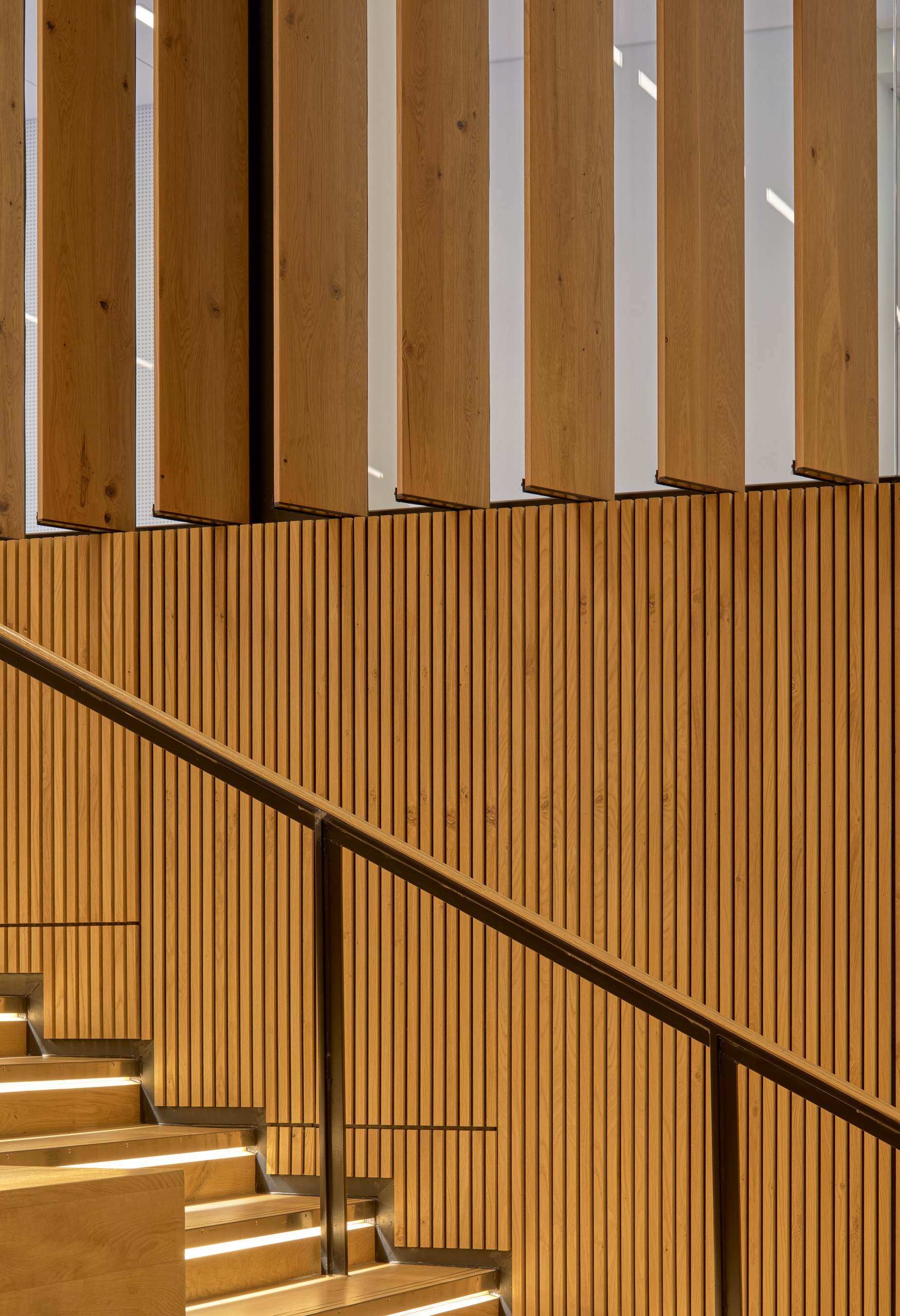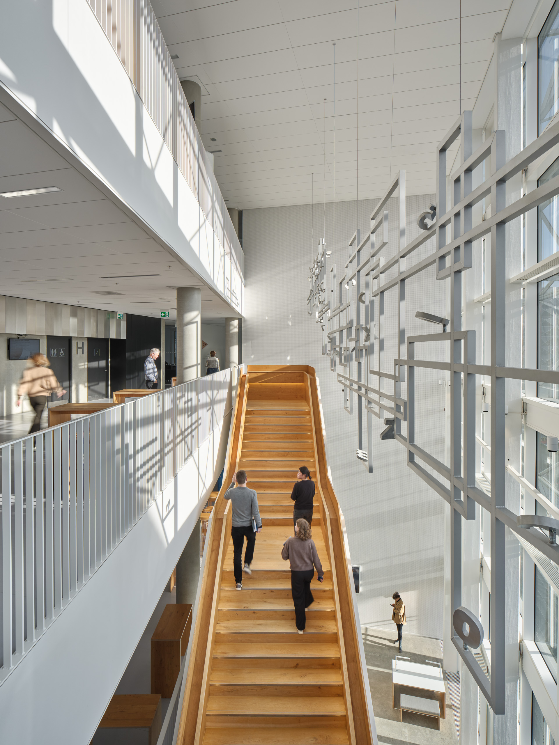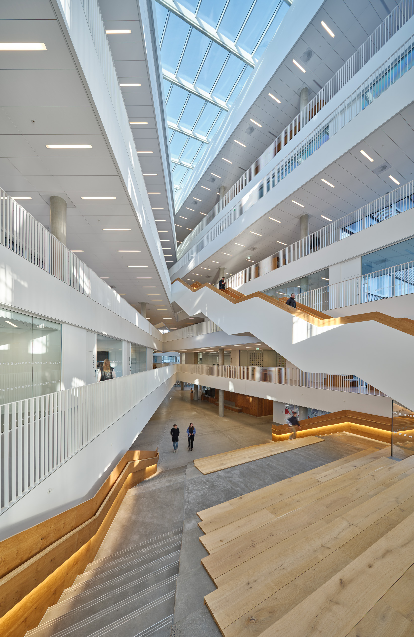 NBB is a vibrant place, a setting for sojourn and contemplation throughout the day, where users get a real sense of being part of a significant knowledge environment with an international profile. NBB provides users with an everyday life and career in a building with spaces ranging from single person offices to highly specialised laboratories. In communal facilities, such as the ‘Troposphere’, all the users in the building can meet across affiliations and academic backgrounds. The Troposphere is an architectural personification of the boundless community.