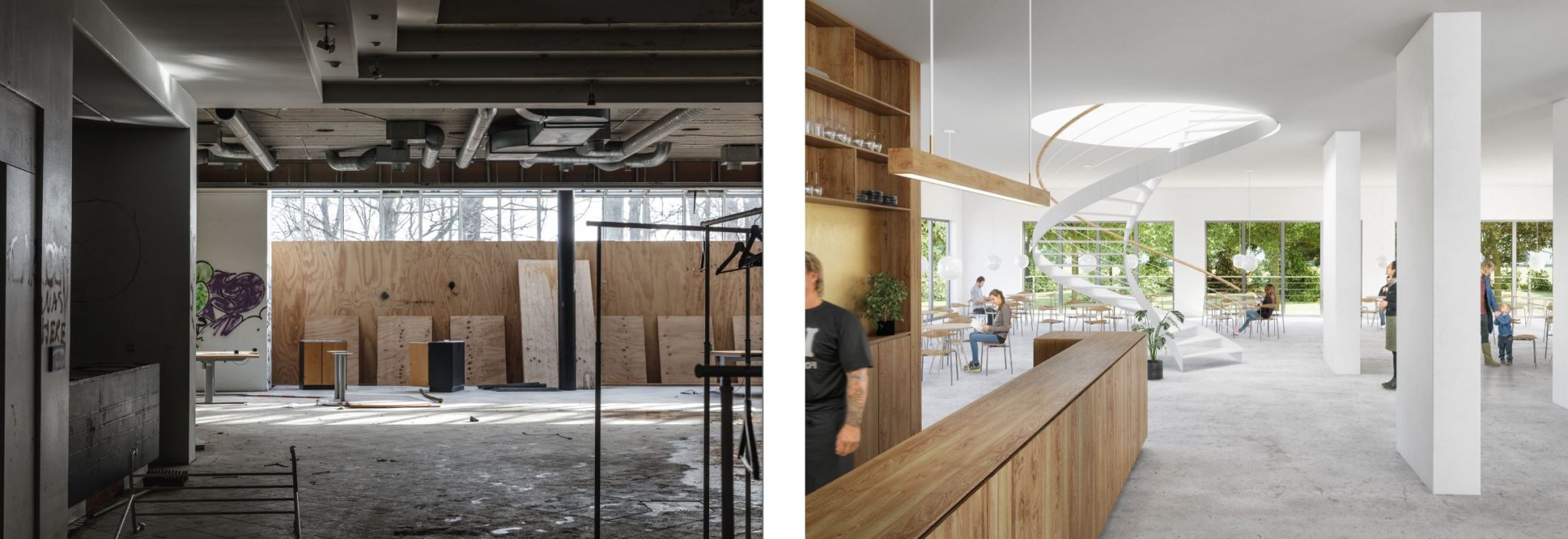 In the area that used to be a saltwater pool, a unique state-of-the-art fitness and wellness center will support the many activities of physical exercise and wellness already enjoyed in the beautiful surroundings. The former cafeteria and museum shop will become two restaurants with a forest view and a beautiful light. They are extended into a cultural area with the opportunity of art exhibitions and concerts as well as sound studios for young creatives.