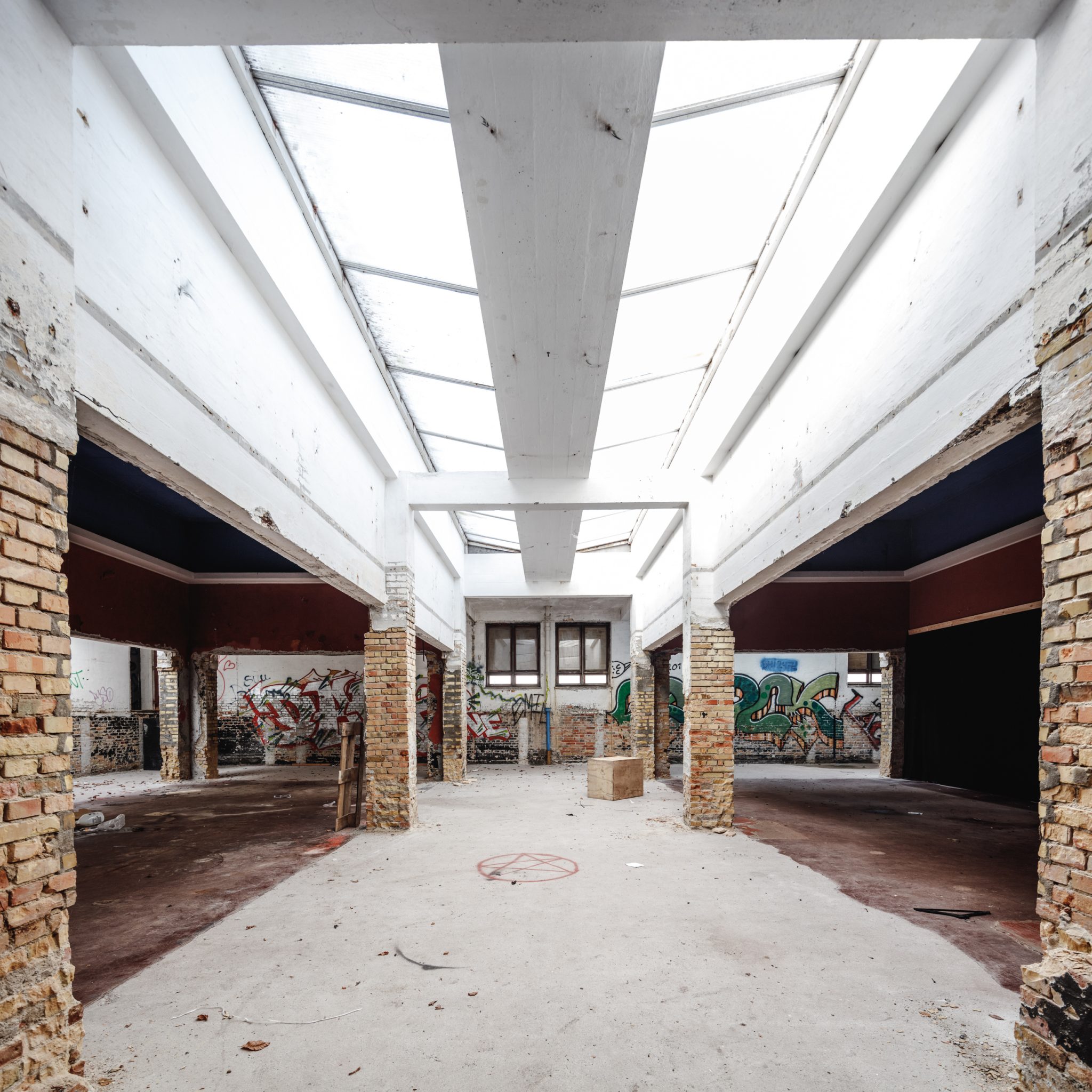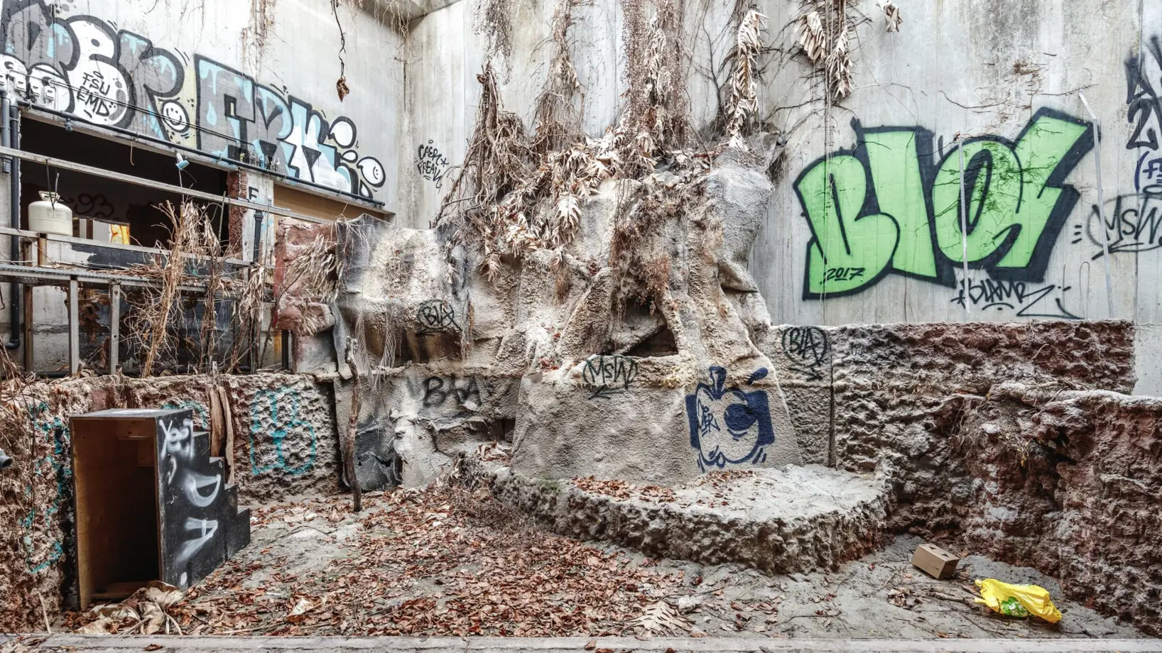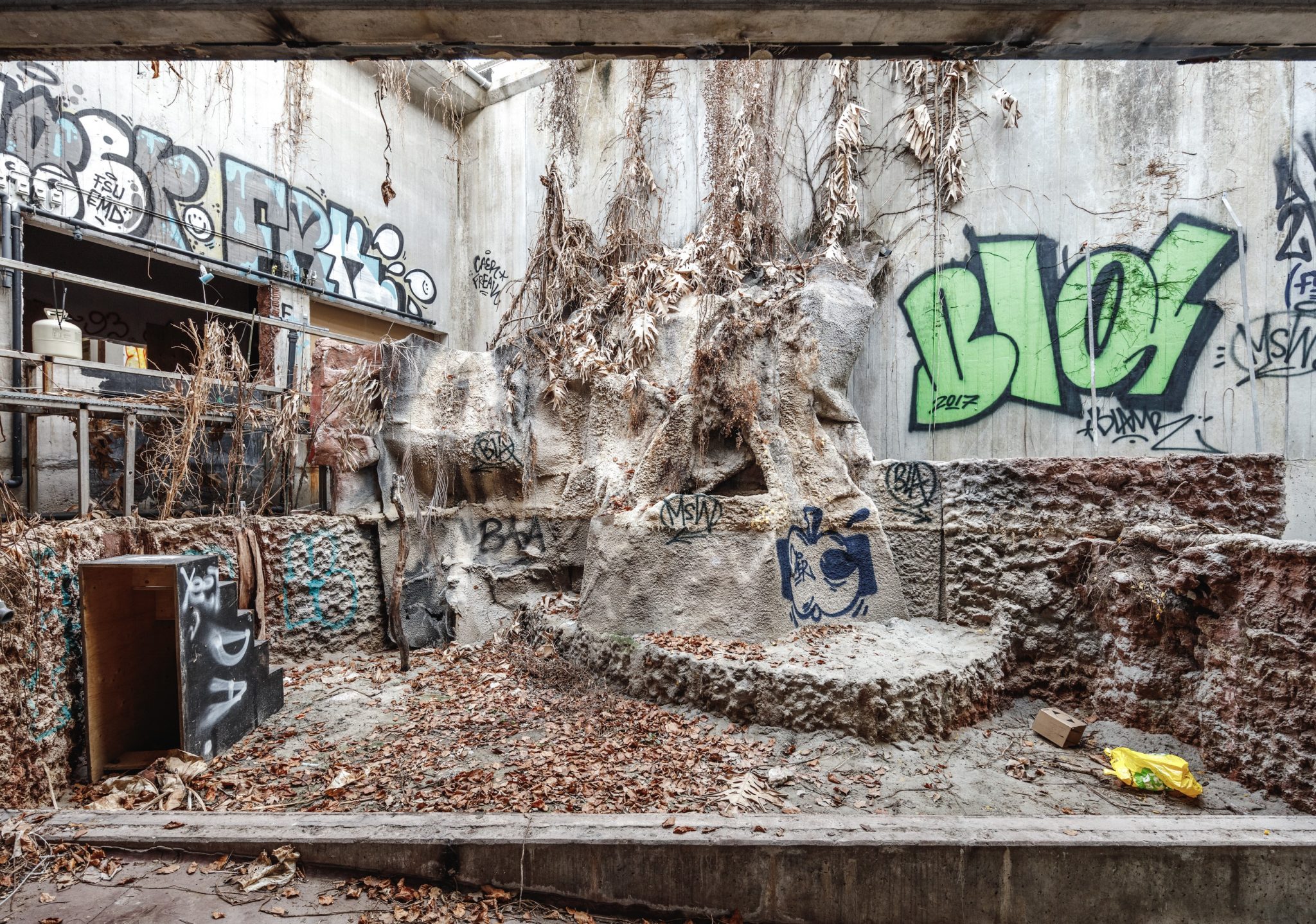 The cafeteria chairs are still scattered as if abandoned in haste. The walls are left to the mercy of the plants and graffiti indicates that the iconic old National Aquarium of Denmark with its modernistic white facades has been left unused for the past seven years.