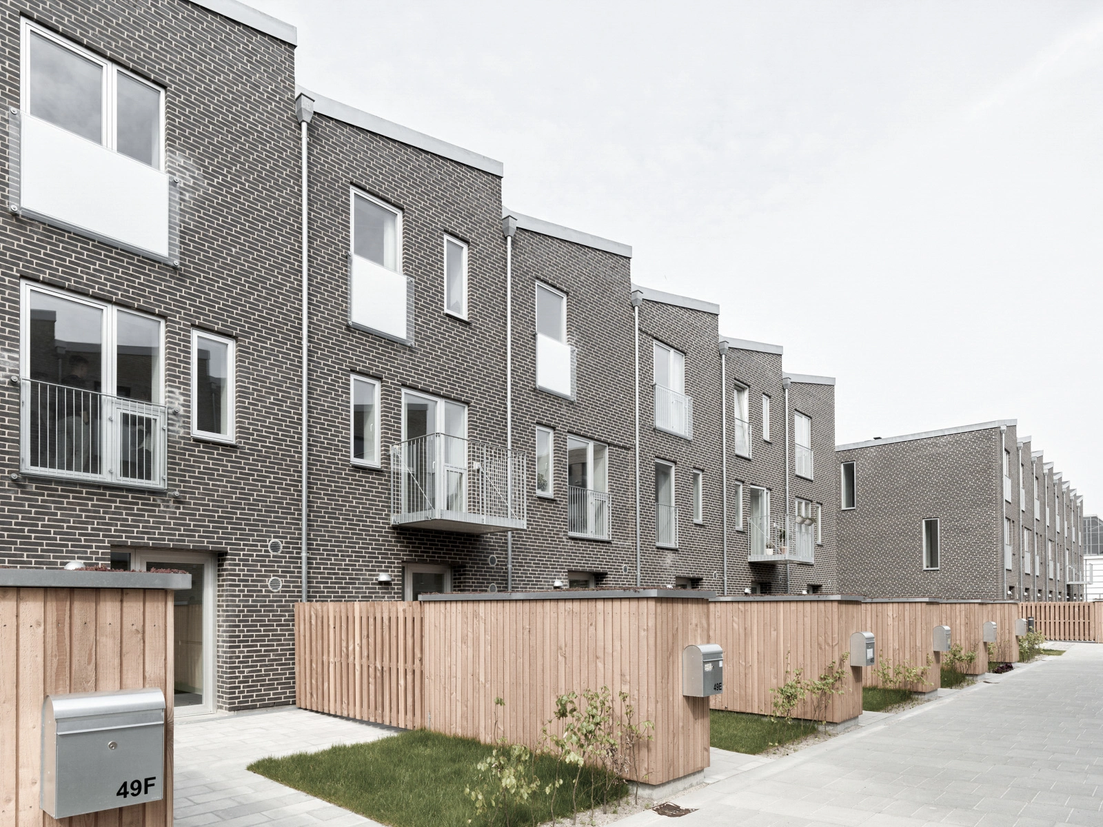 Centrally located in Ørestad near Bella Center and next to Amager Common, this wing structured development form an intimate network of streets. The 122 townhouses are designed for sociable families who wish to live in close proximity of the city with reference to Copenhagen’s historic housing association homes, such as Kartoffelrækkerne and Humleby. An idea that beautifully underpins the vision of a diverse area, as the closeness of the houses enhances a sense of neighbourhood, making the Bella Rows a sociable development.