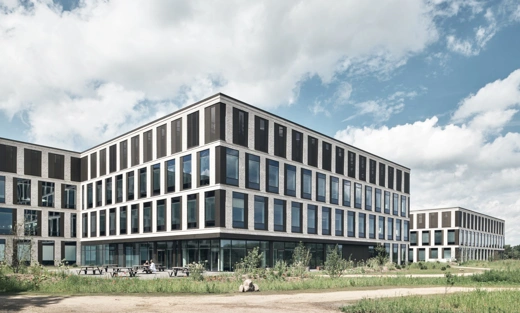 Ninety-six raw oak columns referencing DNA and Fibonacci welcomes visitors to LIFE Campus – a visionary learning centre set to evoke the interest of children in the natural sciences. Located on old hunting grounds, LIFE Campus manifests an interplay between nature and science with a digital learning environment that includes high-tech labs, a 360-degree projection hall and modern workspaces.