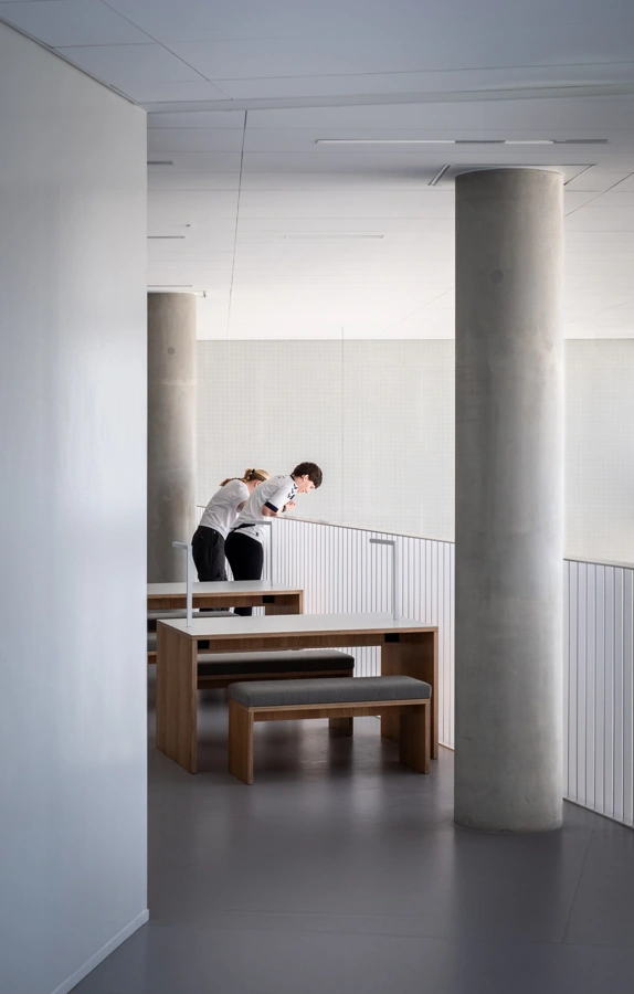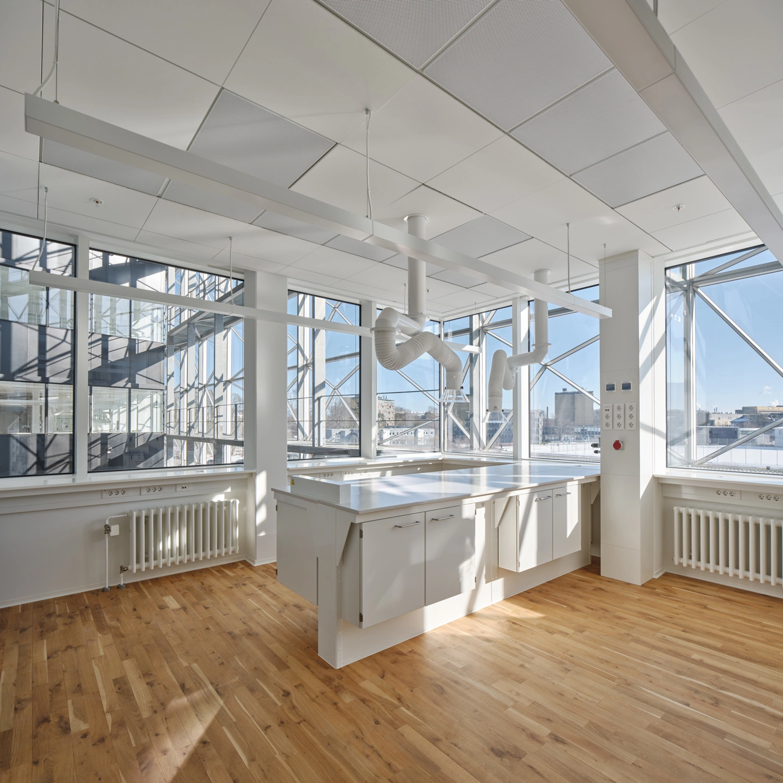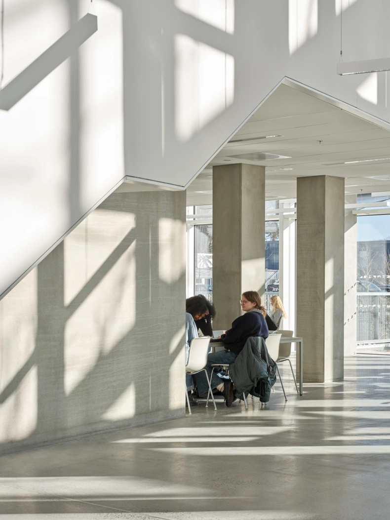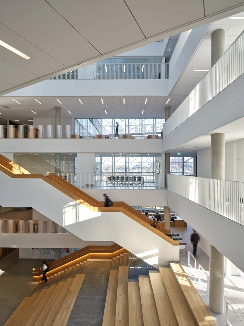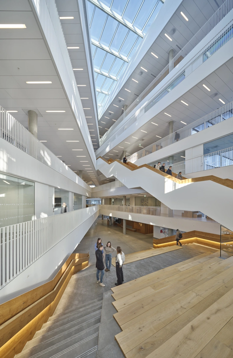 NBB is a vibrant place, a setting for sojourn and contemplation throughout the day, where users get a real sense of being part of a significant knowledge environment with an international profile. NBB provides users with an everyday life and career in a building with spaces ranging from single person offices to highly specialised laboratories. In communal facilities, such as the ‘Troposphere’, all the users in the building can meet across affiliations and academic backgrounds. The Troposphere is an architectural personification of the boundless community.