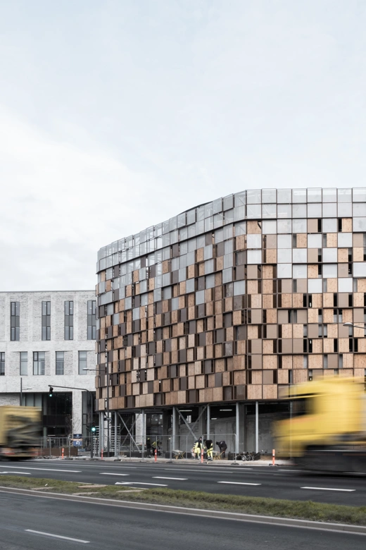 The roof is the first layer in the large horizontal grip of the architecture, inspired by a traditional railway station main hall. The next grip is the facade’s vertical wind bracing underneath the roof. The combination of these two elements forms the overall architectural building concept.