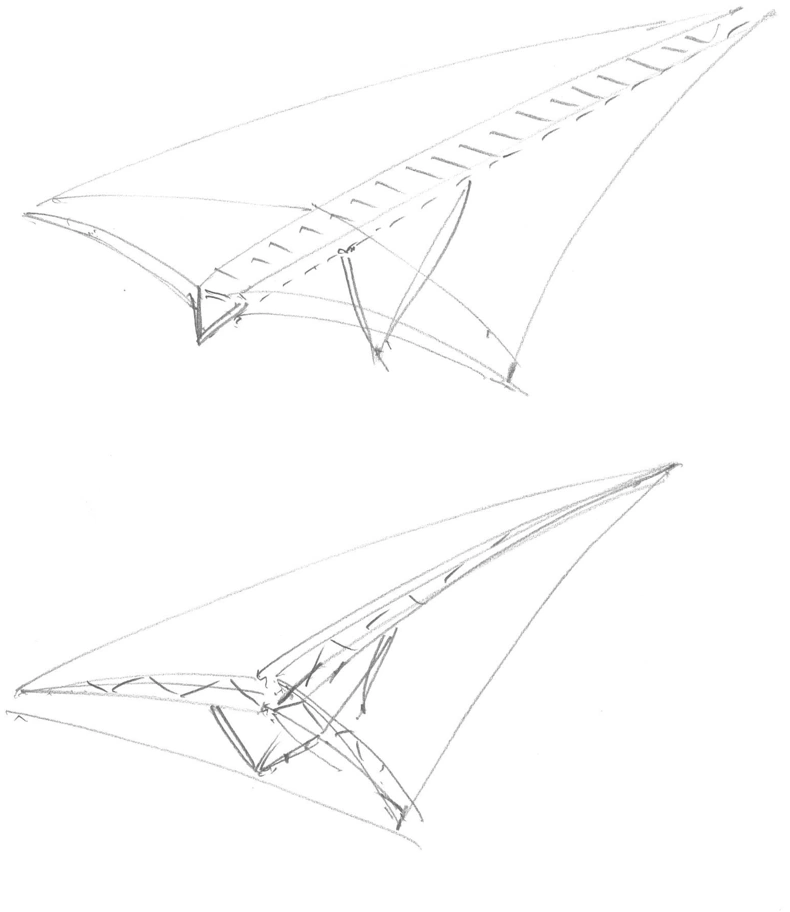 The triangular form promotes good passenger flow, and the geometry reflects the different passenger categories. The triangle is a classic inside-out design approach based on a passenger flowchart.